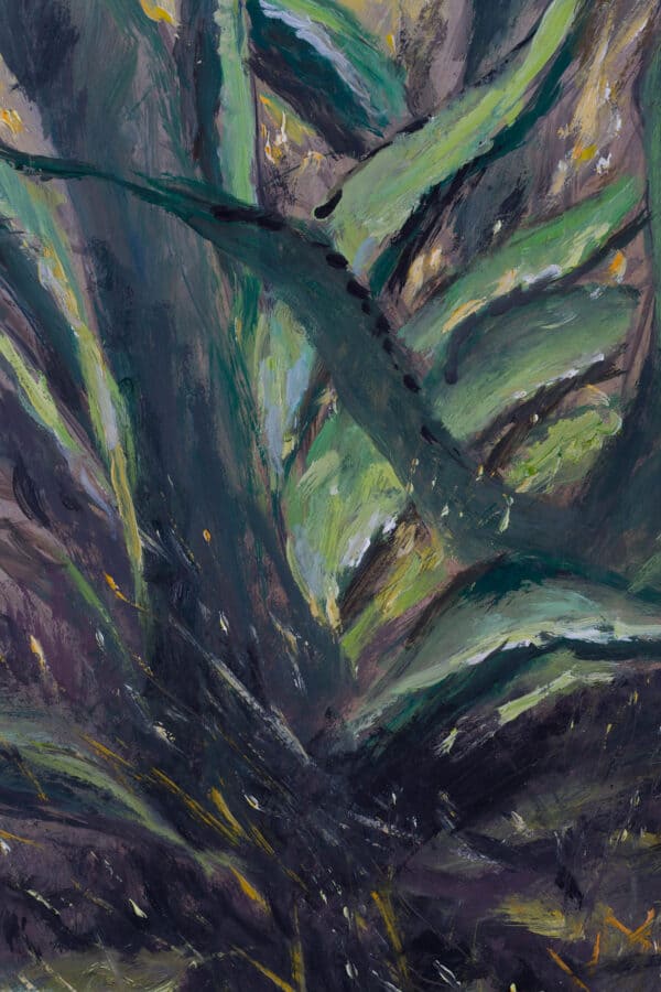 La obra no solo es un estudio botánico, sino también un testimonio del poder reconfortante del arte y la naturaleza en tiempos de incertidumbre. Representa cómo el Maestro Cruz encontró inspiración y consuelo en los paisajes cotidianos durante la pandemia, transformando la observación paciente en una celebración de la vida y la persistencia.